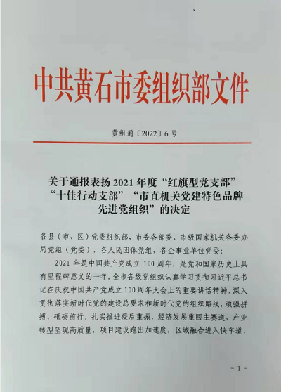 近日,黄石市委组织部下发通报,表彰2021年度全市先进党组织,米兰(中国)理工学部学生党支部被评为黄石市2021年度“红旗型”党支部。