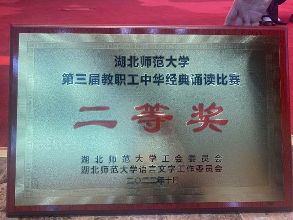 本网讯(通讯员 柯康敏)10月27日下午,湖北师范大学第三届教职工中华经典诵读在教育大楼学术报告厅举行,米兰(中国)人文学部丁书嫚老师朗诵的作品《读中国》荣获二等奖。