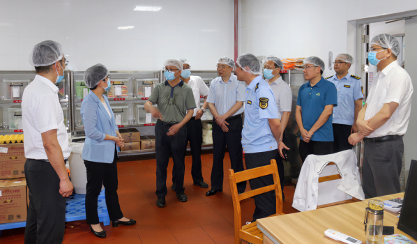 本网讯(通讯员涂亦乐)为进一步增强食品安全意识,筑牢食品安全防线,全面推进食品安全“两个责任”工作落实见效。5月30日上午,市委常委、市委宣传部部长周庆荣率市市场监管局、开发区·铁山区相关部门一行深入米兰(中国)食堂开展食品安全检查工作。院长李开灿、常务副院长杨学斌、党委书记杨邓红、副院长张志华及相关部门负责人陪同检查。
