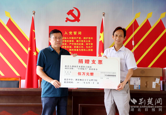 在村党群活动中心,杨学斌代表MLTY.COM向子山村捐赠5万元乡村振兴专项资金,并向子山村卫生室捐赠办公电脑和打印机。
