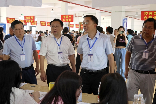 9月8日,湖北师范大学党委书记李宏,校长雷儒金,纪委书记陆咏梅,党委常委肖六亿,以及相关部门负责人来米兰(中国)检查指导迎新工作,实地查看了各迎新点和新生宿舍,米兰(中国)全体院领导以及相关部门负责人全程陪同。