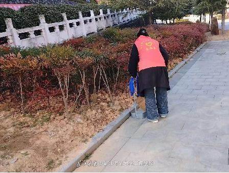 元月二十五日,队员们一大早就来到英山县烈士陵园,在烈士陵园管理中心的工作人员指导下,手提扫帚、铲斗、毛巾,对陵园广场前的沙石、落叶、垃圾和夹缝里的杂草进行了清理。