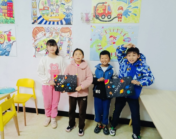 在手工创意课中,志愿者们带领孩子们制作八大行星运行图,和孩子一起探索宇宙奥秘。在志愿者的指导下,小朋友们充分发挥自己的想象力和动手能力,采用搓、揉、捏、切等方法,八大行星运行图跃然纸上。手工课丰富了青少年儿童的生活,既锻炼了动手能力,又提高了专注力和创造力。