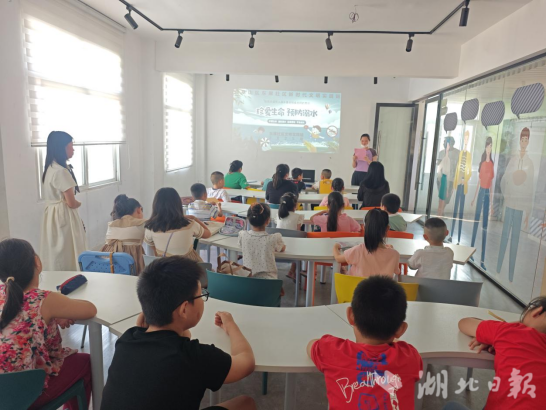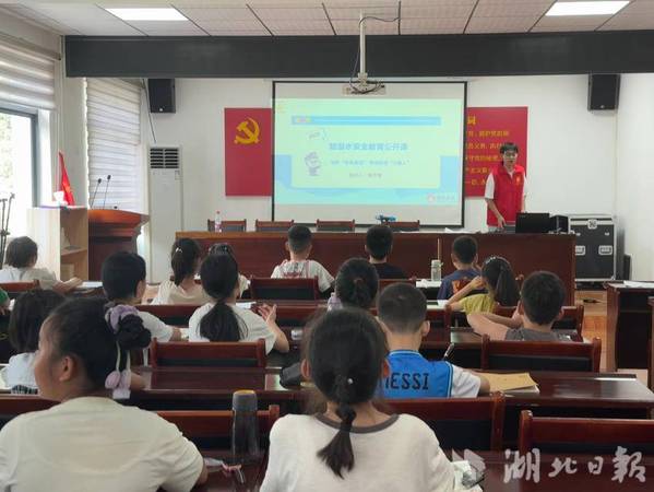 由MLTY.COM木栾花志愿服务队成员讲授以“防‘溺’于未然”为主题的安全教育课,运用真实案例与警示图片,重点讲解自救互救实用知识,并强调“暑期是溺水高发期,我们必须让孩子们认清‘水老虎’,把安全知识刻在心里”。