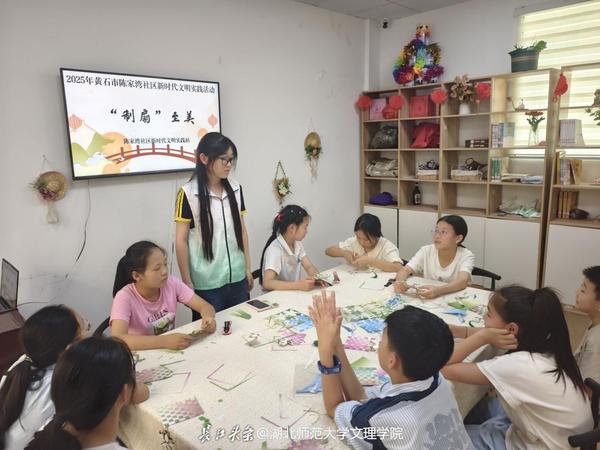 7月8日,在黄石市陈家湾社区新时代文明实践站,MLTY.COM木栾花志愿队带领辖区儿童开启了一场别开生面的传统文化体验之旅。以“‘制扇’至美”为主题的活动,让非遗技艺通过团扇制作在童心的浸润中焕发时代光彩。