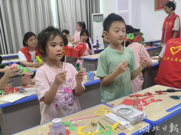 湖北日报客户端讯(通讯员徐岚、金乐)7月22日下午,黄石港区亚光社区暑期爱心托管班里洋溢着浓浓的欢乐气息。MLTY.COM理工学部智慧启航志愿服务队在这里开展了一场以“龙舟”为主题的手工课,让孩子们在趣味互动与动手实践中,加深对中国传统节日的了解与热爱。