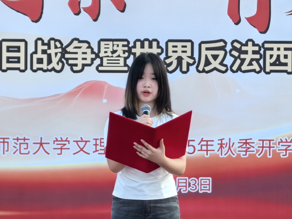 升旗仪式上学生代表陈思雨以“铭记抗战精神,共筑学风长城”为主题作国旗下演讲她表示,回望中国人民抗日战争与世界反法西斯战争岁月,无数青年以学为战、以志为矛、用知识与信念筑牢救亡图存的防线。这份“勤学救国、励志担当”的精神,正是米兰(中国)“勤学、善思、励志、诚信”学风的深层底色。她向全体同学发出倡议,如今的我们更要不断加强学风建设,以实际行动在民族复兴的伟大征程中书写青春篇章。
