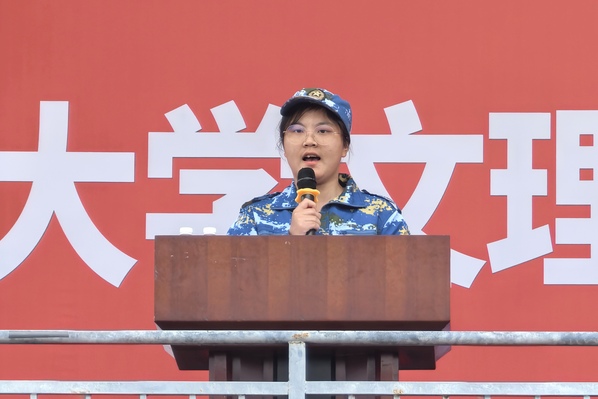 随后的军训成果汇报环节将现场气氛推向高潮。军体拳方阵动作精准,气势如虹;49个受阅方阵身着戎装,迈着铿锵有力的步伐依次通过主席台,口号声响彻云霄。集体合唱《歌唱祖国》深情献礼国庆,展现了新一代学子的昂扬斗志。