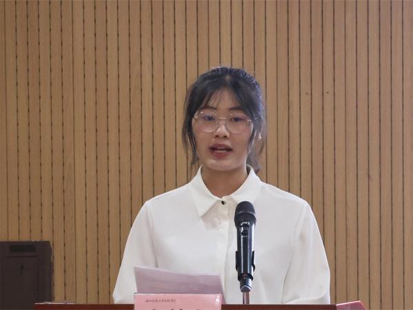 在诵读党章,奏唱国歌后,学员代表望辰发言。她表示,我们正处于中华民族伟大复兴的关键时期,作为新时代青年,要坚定共产主义理想信念,坚定不移听党话,跟党走,做有理想、敢担当、能吃苦,肯奋斗的新时代好青年。要努力学习贯彻习近平新时代中国特色社会主义思想,争做优秀青年模范,努力向党组织靠拢,为实现共产主义理想而不懈奋斗。