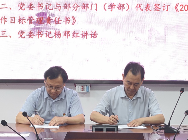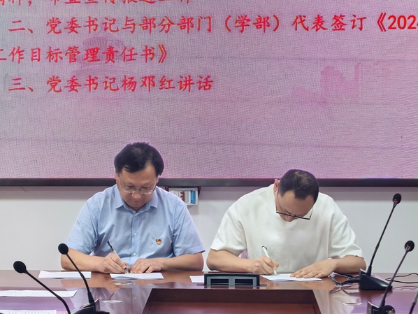 杨邓红与部门(学部)代表签订《2024年意识形态工作目标管理责任书》。