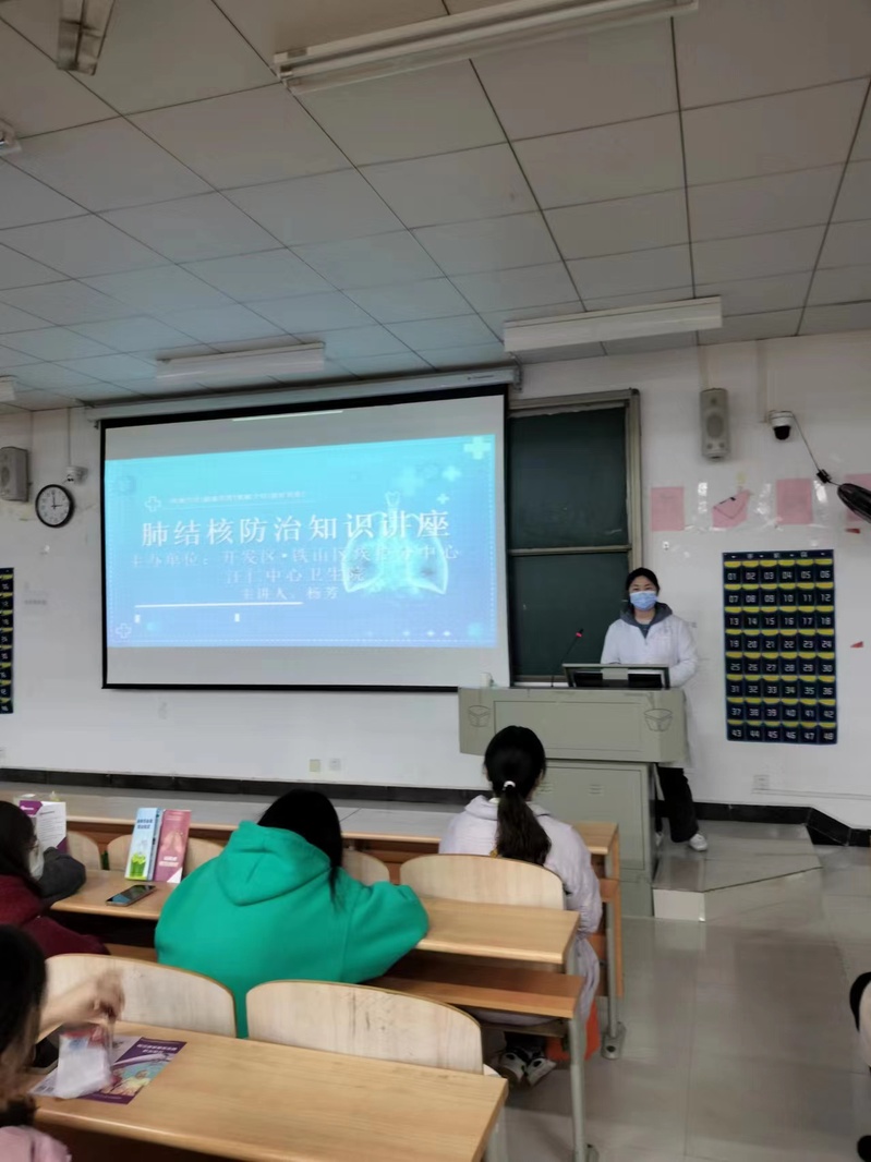 本次培训由汪仁卫生院医师杨芳主讲,黄石市疾控中心严子桂,开铁区疾控中心杨思思等领导出席,培训内容主要包括《肺结核防治知识讲座》及《春季传染病预防知识培训》,各学部积极组织学生骨干共计百余人参加了本次活动。