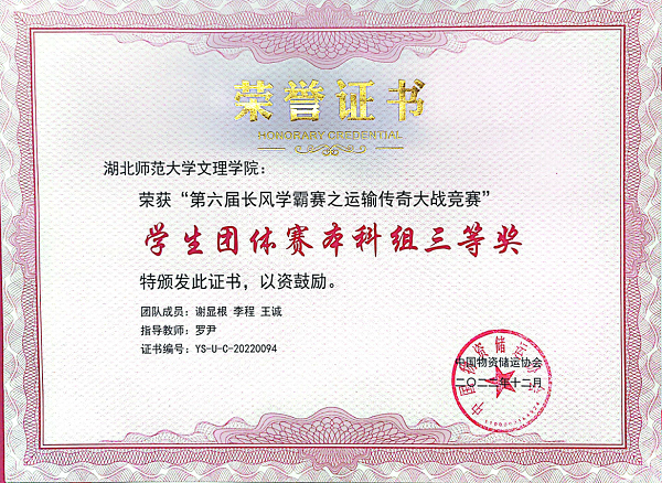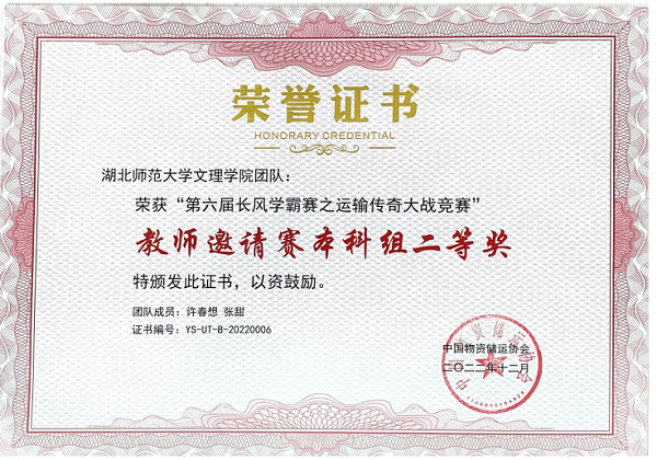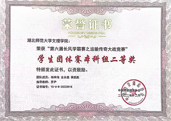 由中国物资储运协会主办,北京络捷斯特科技发展股份有限公司、全国交通运输产教融合服务平台承办的第六届“长风学霸赛之运输传奇大战”全国总决赛于20221215日落下帷幕。物流管理专业张甜、许春想两位老师经过模拟实训和竞赛操作两个环节的比拼,荣获教师邀请赛二等奖;物流管理专业2002班学生杨林海、全永鑫、黄颜彪在学生团体总决赛中荣获本科组组二等奖,谢显根、李程、王城荣获本科组组三等奖,罗尹老师荣获最佳指导教师奖。