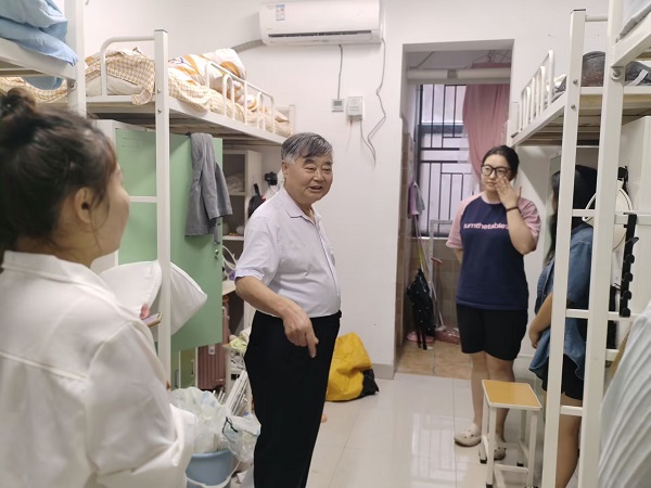 在走访时,领导和老师们对宿舍进行了全面细致的检查,提醒同学们注意防范电信网络诈骗,要高度重视宿舍的安全和卫生,尤其注意用电安全,要勤开窗通风,保持宿舍干净整洁,做好个人卫生防护。
