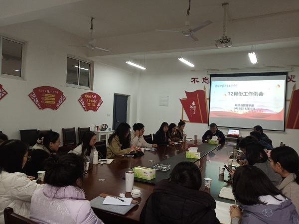 11月30日下午2点半,经济与管理学部于2号实验楼213会议室召开12月份工作例会,部署近期重点工作。会议由党总支副书记罗铭主持,学部全体教职工参加。