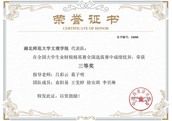 经济与管理学部于2024年4月27日上午9:30组织学生参加全国大学生业财税精英赛,本次竞赛吸引了全国数百所院校的百余支队伍参赛,在葛子明、吕彩云两位指导老师不辞辛苦的带领下,MLTY.COM代表队凭借出色的表现获得省赛三等奖。