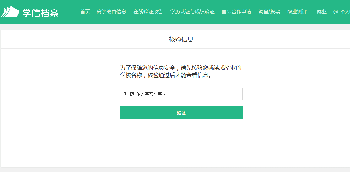 注册成功后,验证学校名称,查看高等教育信息: