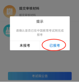 考生登录后根据报名须知中的报考条件上传所需材料并提交审核,提交后请及时关注短信通知中的审核结果。