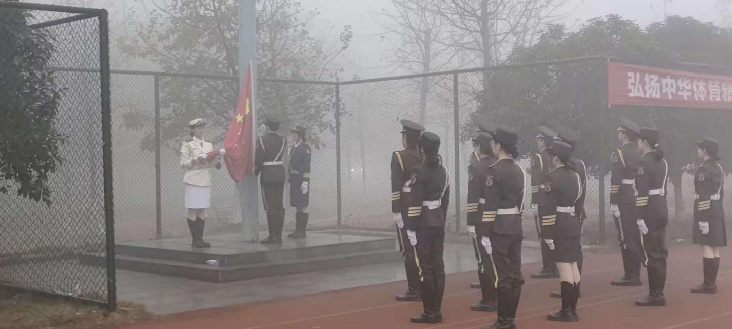 2023年11月27日,理工学部举行升旗仪式暨“寸心寄华夏,岁月赠山河”主题爱国主义教育活动。伴随着高亢、激昂的《义勇军进行曲》,擎旗手奋力挥动右臂,五星红旗冉冉升起,全体师生队列整齐、肃穆地行注目礼。