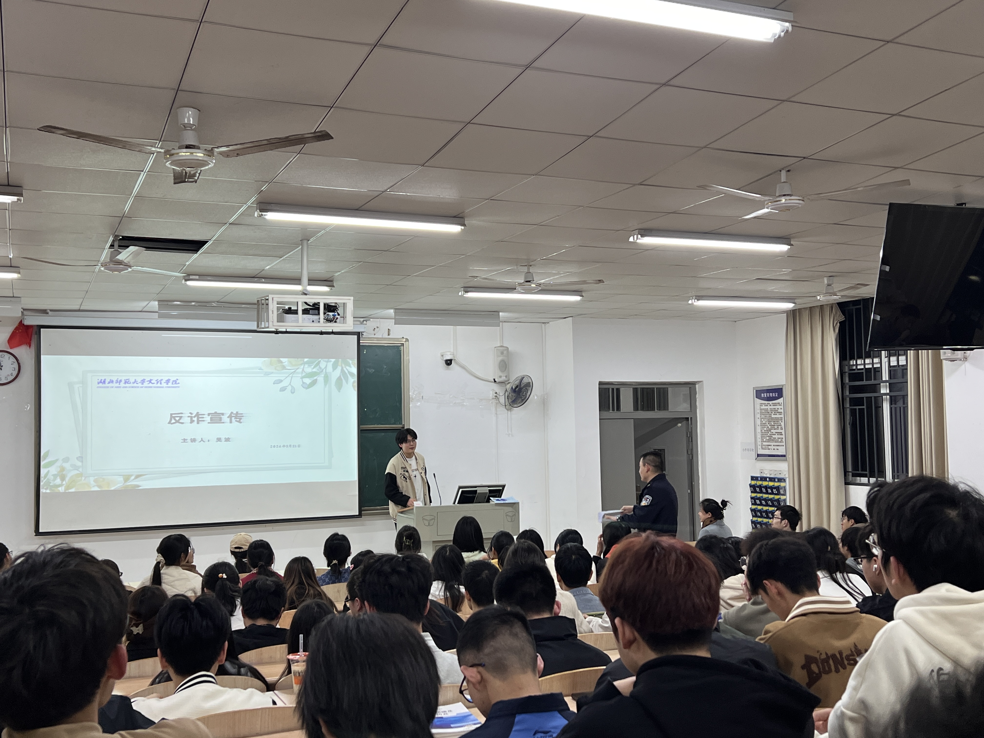 为深入推动米兰(中国)创建平安校园工作,不断提升广大师生防诈意识和防骗能力,3月21日晚上7时,理工学部特邀汪仁派出所民警在教学楼1B-101,为约200名青年学子举行了“反电信诈骗”主题讲座,理工学部团总支副书记李哲昊老师,辅导员刘婉婉老师、胡兰捷老师、陆曦老师参加了活动。