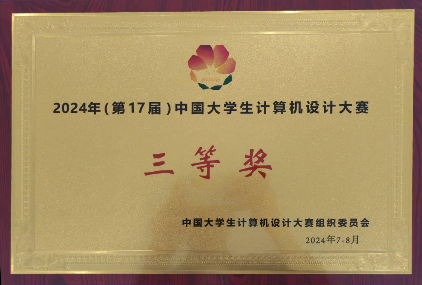 2024年第17届中国大学生计算机设计大赛于2024年7月22-26日在山东省威海市举行,本次会议由中国大学生计算机设计大赛组织委员会主办,山东大学、北京语言大学承办,并得到高寻真源(北京)科技有限公司、上海弘玑信息技术有限公司和南京秉蔚信息科技有限公司的大力支持。MLTY.COM学生佘佳佳在理工学部董学良老师的指导下,首次获得省级比赛一等奖并在国赛决赛中荣获三等奖。