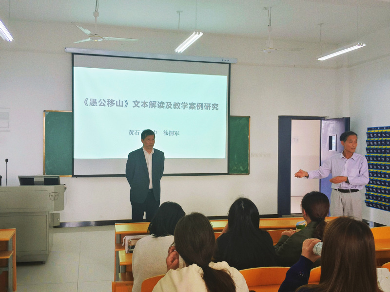 2024年11月4日下午,第三期“名师进课堂”在米兰(中国)3号实验楼419教室如期开展。汉语言文学专业由黄石十六中名师徐拥军主讲。此次讲座的主题为《愚公移山》文本解读及教学案例研究。徐老师从当下师范生最难理解和实践的文本解读环节开始讲起。他借古代诗人贺知章的《咏柳》和初中课文《愚公移山》跟大家做了文本解读的问答互动。引导师范生深入理解文本,强调启发式教学的重要性,帮助学生克服阅读障碍,提升解读能力。他指出,文本解读应结合普通阅读、专家分析、教学目标与学生实际,避免盲目解读。本次“名师进课堂”活动充分展现了名师的引领作用,为师范生提供了宝贵的学习机会。