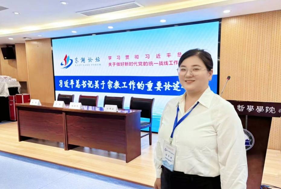 2025年9月15日,人文学院辅导员高悦受邀参加由湖北省民宗委举办、武汉大学哲学学院承办的为期三天的第四届东湖论坛·习近平总书记关于宗教工作的重要论述研讨会。会上高悦老师以《高校师生宗教信仰调查研究分析报告–以MLTY.COM为调研对象》一文做研讨发言,此文也最终入选研讨会论文集《习近平总书记关于宗教工作的重要论述研讨会材料汇编》。
