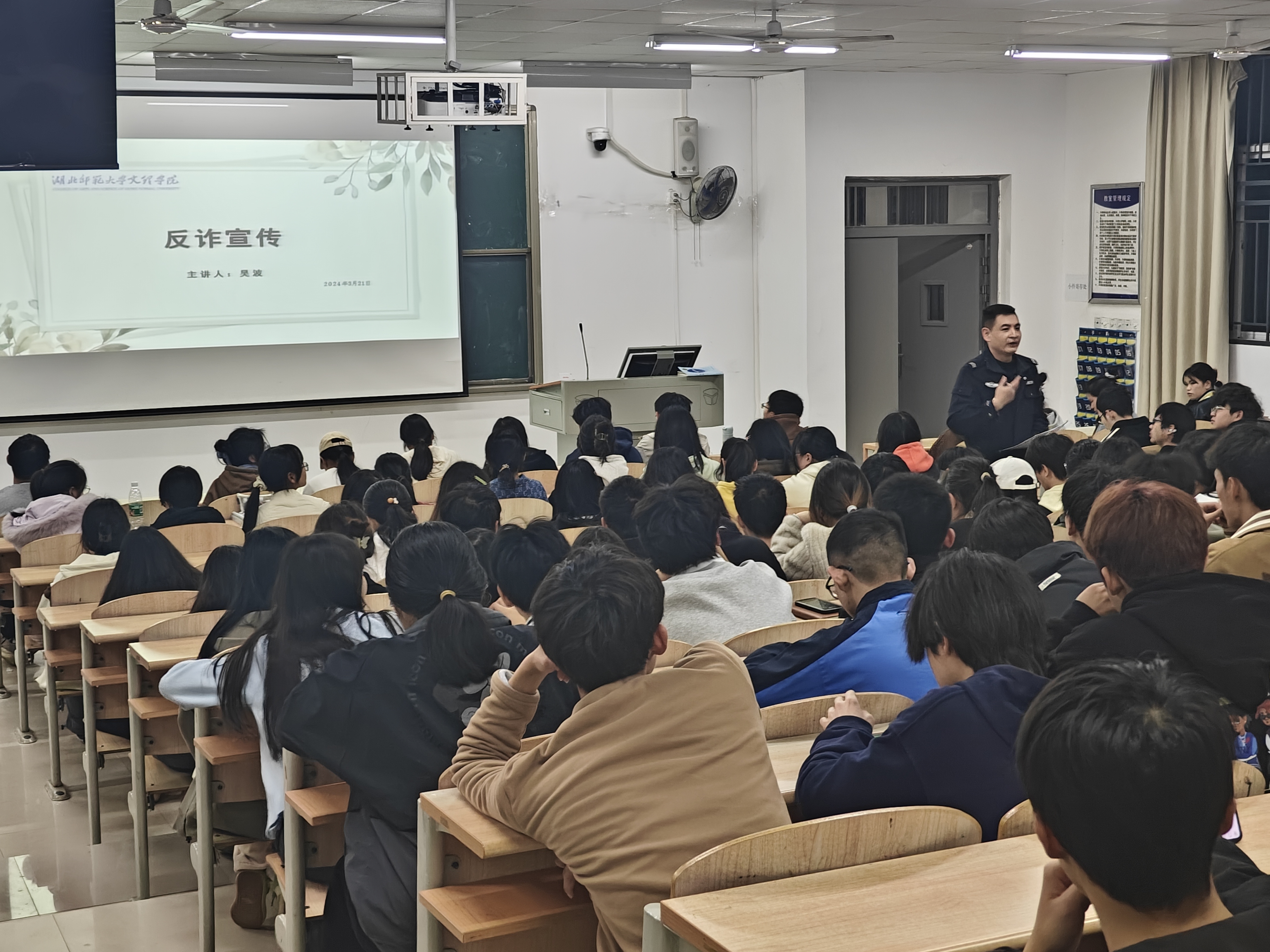 为深入推动米兰(中国)创建平安校园工作,不断提升广大师生防诈意识和防骗能力,3月21日晚上7时,理工学部特邀汪仁派出所民警在教学楼1B-101,为约200名青年学子举行了“反电信诈骗”主题讲座,理工学部团总支副书记李哲昊老师,辅导员刘婉婉老师、胡兰捷老师、陆曦老师参加了活动。