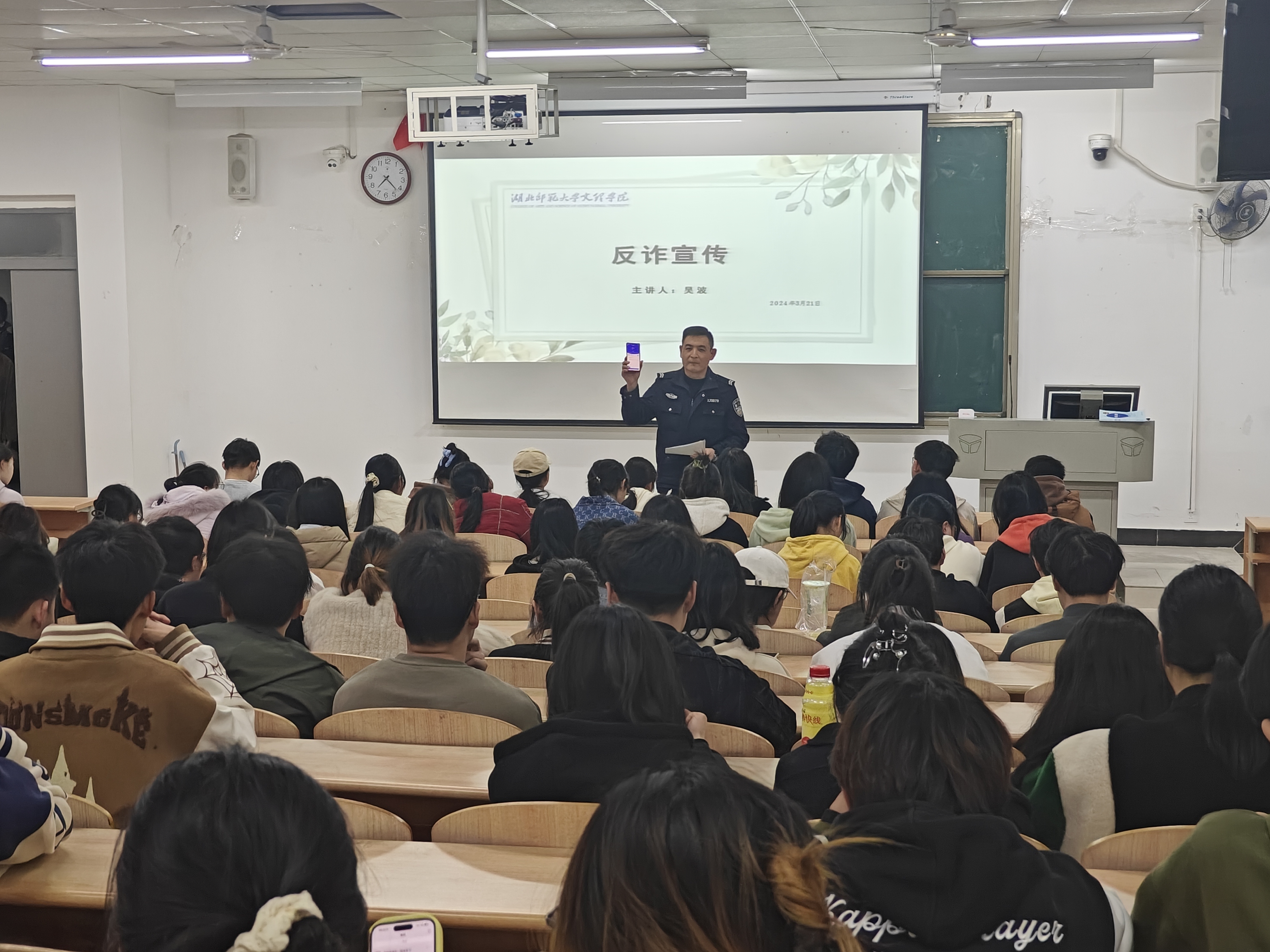吴警官通过分析身边鲜活的电信诈骗案例,向青年学子讲述了网络刷单、AI智能诈骗、网上购物诈骗等电信诈骗的特点、惯用手段及反诈知识和技巧,引导青年学子擦亮眼睛,守住自我教育、自我管理的第一道关口。