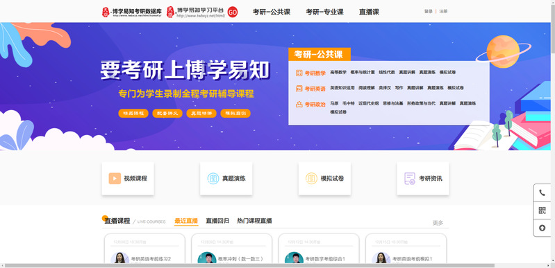 《博学易知考研数据库》是权威的考研视频学习平台,囊括考前指导、名校宝典、铭师讲堂、考研公共课、考研专业课、小语种考研、英语四六级、考研特训营八大类考研视频资源。提供从考研考前辅导,名校考研专业解析,考研公共课、联考课、专业课学习,行业顶尖铭师辅导,考研复试全过程考研课程,考研视频课程逾20000课时,满足各类考研学习需求。