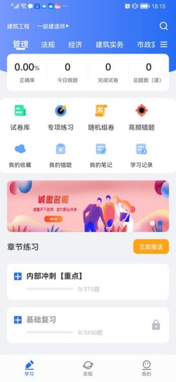 刷题中心 独立的刷题中心聚能平台所有的学习功能,有章节练习、专项练习、随机组卷、每日一练、历年真题、模拟试卷、冲刺密卷、高频错题、试题检索、试卷检索等,还可查询用户所有的学习记录,如做题记录、试卷记录、我的错题、我的收藏、我的笔记、学情数据等,记录分析用户的学习数据,为用户提供全方位的考试应用服务。