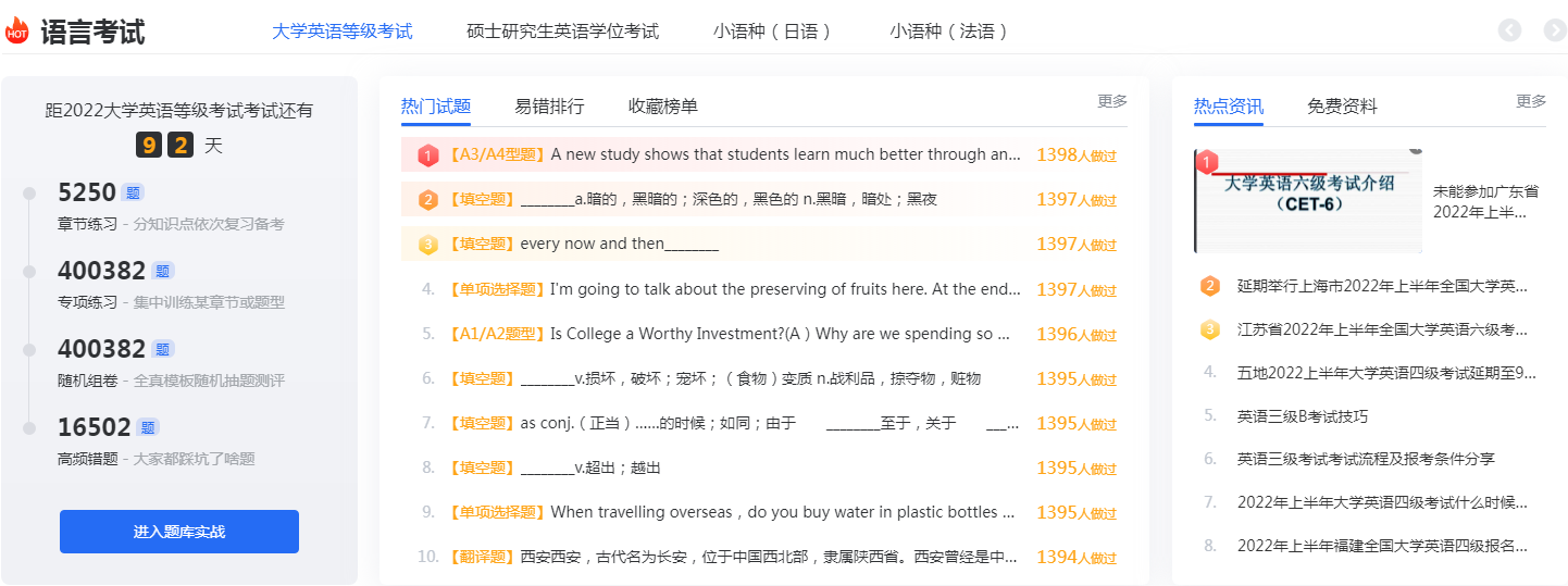 通过平台所有用户的做题数据统计,以试题集合的方式为用户新增提供高频错题、热门试题、收藏榜单三种刷题服务,能够帮助用户在复习时有效把握个人复习水平;