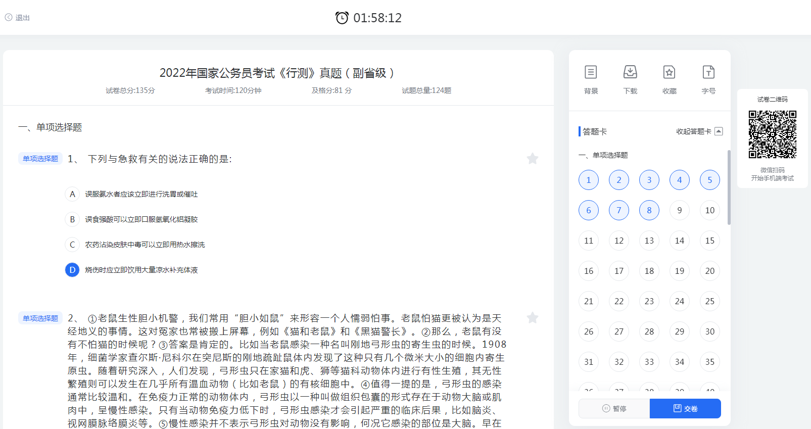 新版本试卷库提供试卷二维码,每套试卷都有唯一的二维码,用户可以使用微信扫描二维码实现手机端的快捷考试应用。用户还可以向他人分享考试结果。