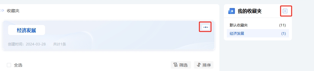 分类管理已收藏文献,可创建和编辑收藏夹。点击⊞新增收藏夹,点击可重命名或删除收藏夹,“默认收藏夹”无法重命名或删除。