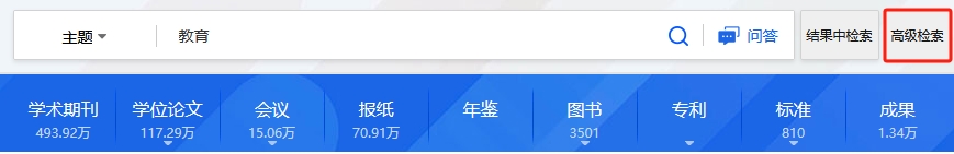 (2)在一框式检索或高级检索页面中的检索设置里删除或添加资源类型