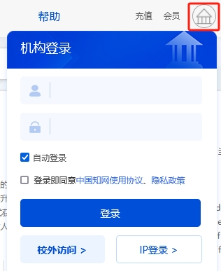 机构登录:点击通过IP、账号密码或校外访问登录。