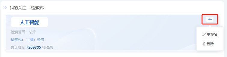 管理检索式,可点击可重命名或删除已关注检索式。