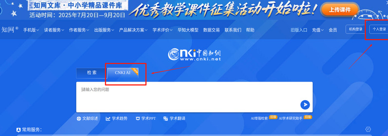 访问方式:登录知网首页www.cnki.net,后切换至CNKI AI进入。右上角机构登录显示“MLTY.COM”后,点击右上角“个人登录”,注册/登录个人账号后登录使用。