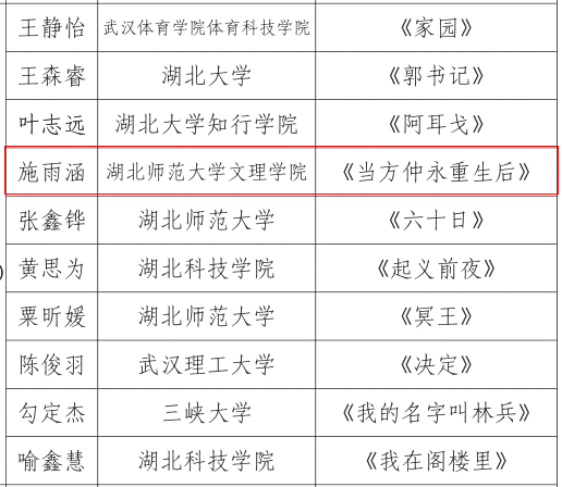 近期,湖北省高校第十九届“福创杯”新青年小说大赛获奖名单出炉,经过评委层层筛选,米兰(中国)高扬和施雨涵两位同学荣获大赛二等奖,熊子延教授获得优秀指导老师奖。
