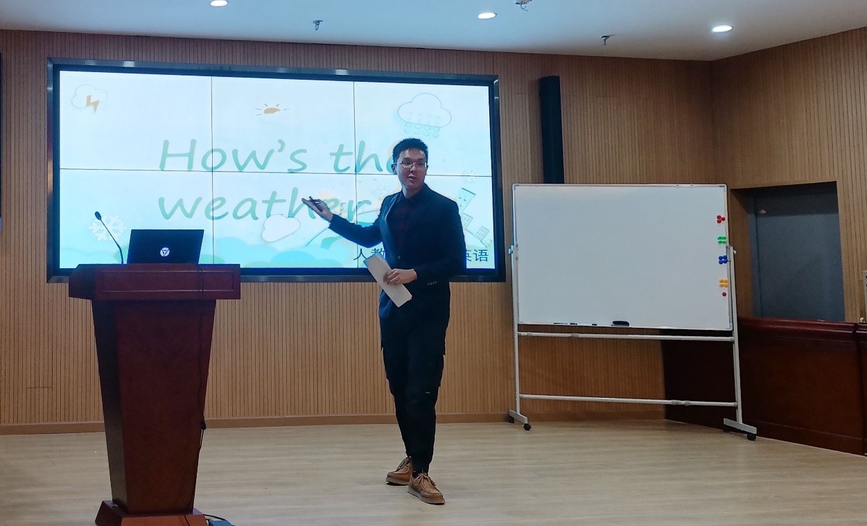本次大赛以模拟课堂的方式进行,授课限时6分钟。赛程精彩异常,十三位选手激情昂扬,各显神通。“how’s the weather”以自然流畅的语言与富有创意的方式彰显出扎实的教学基本功;《念奴娇.赤壁怀古》以挥洒自如的仪态与独特新颖的教学方法洋溢着朝气与热情的风采。表演完毕,王建明老师对选手们的授课做出了专业的点评。