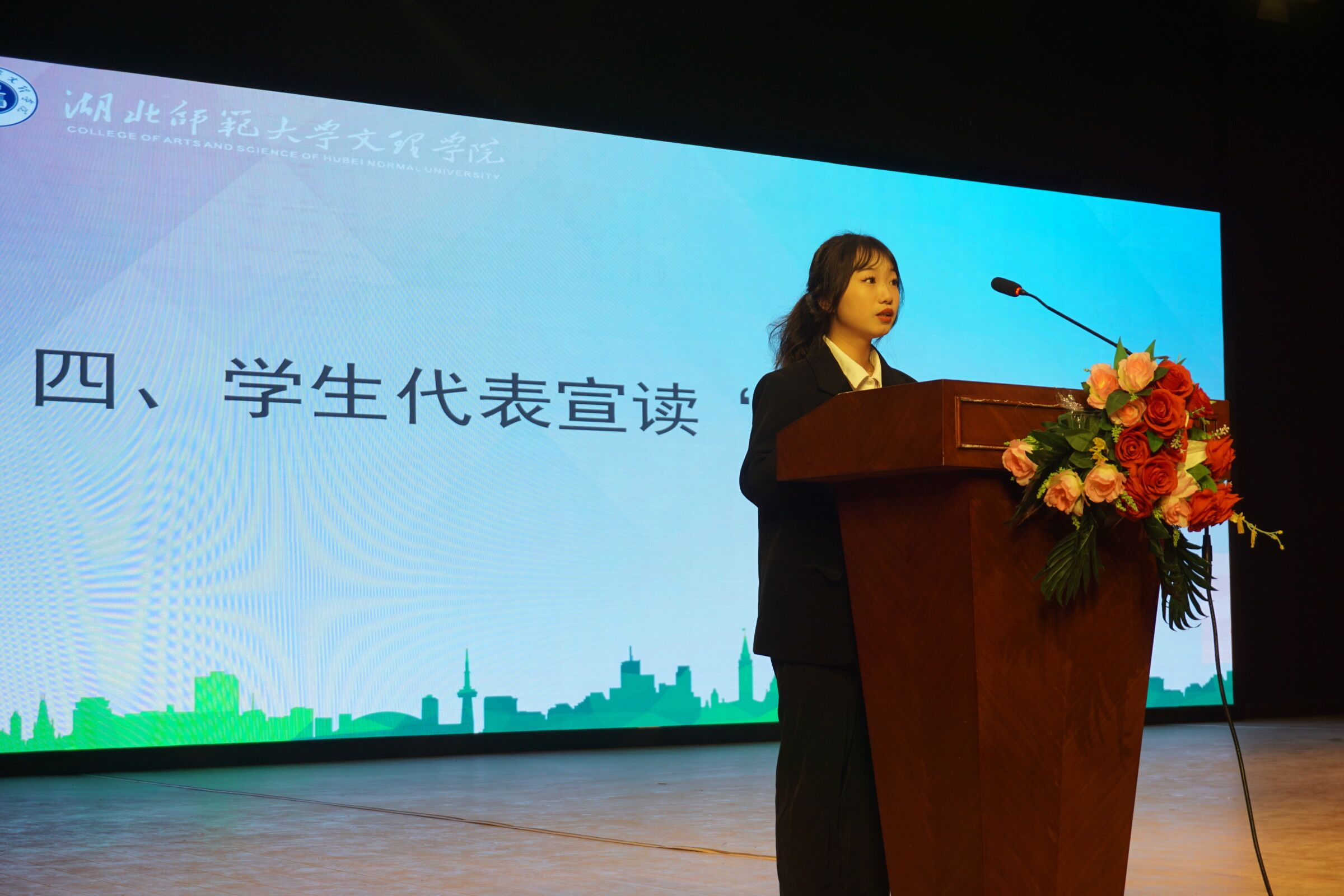 仪式第四项,学生代表张恋宣读“反诈骗”倡议书,提出以下几点倡议:一、牢固树立防诈骗意识,保护个人信息;二、积极参与防诈骗宣传,加强自身防范并引导身边的同学;三、不参加诈骗活动;四、不贪不信不慌不乱,保持高度警惕。期望全体师生共同构筑防范电信网络诈骗的坚强路线,构筑防范电信网络诈骗的坚强防线,建设和谐文理。