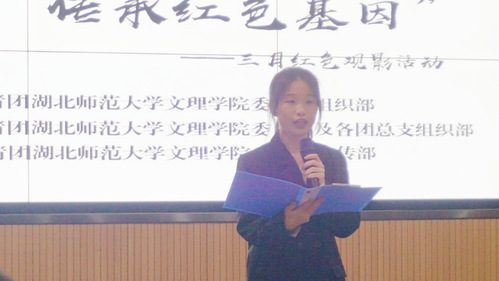 活动第三项,同学们分享观影心得。校团委组织部廖婧凤、王怡鑫两位干事分别再现电影精彩内容同时阐述了对雷锋精神的理解,他们表示,雷锋精神,人人可学;奉献爱心,处处可为。