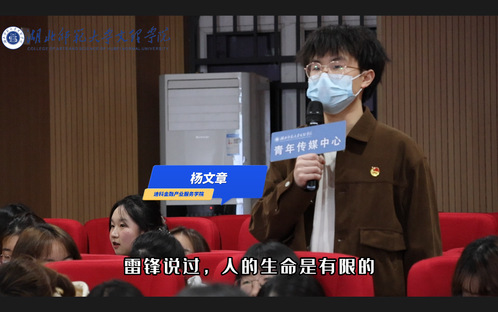 理工学部潘贝贝表示作为新时代的少年,我们要将雷锋精神内化于心外化于行,让学习雷锋精神在祖国大地蔚然成风。