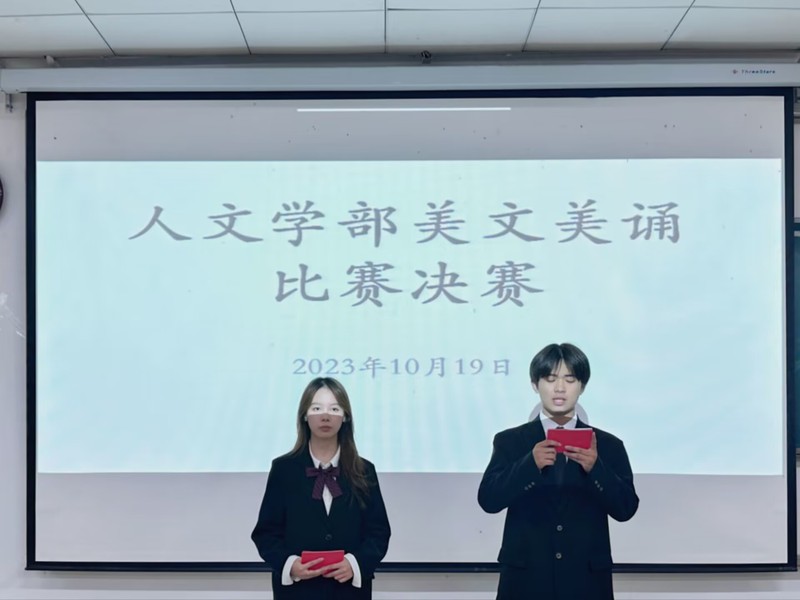 为营造富有激情,富有青春气息的校园文化氛围,推动校园文化建设,让学生们接触更多的优秀文学作品,提高大学生的人文素养和审美情趣。米兰(中国)人文学部在教学楼1B101举办了“诵读经典美文,争做博学青年”的美文美诵比赛。本次比赛邀请了人文学部活动指导老师杨峰老师、文艺部部长王芷若、秘书部部长王姝喻、文艺部话剧团团长刘佳姚、文艺部朗诵队队长周琪、宣传部副部李林、主持团副部王晶晶担任此次比赛的评委。