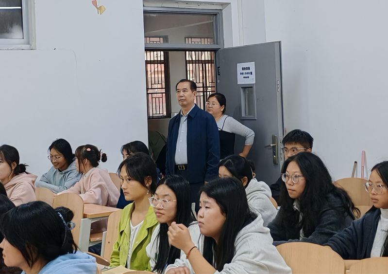 在检查过程中,人文学部周景斌书记对各班学生“手机入袋”情况以及“课前十分钟”活动的开展情况表示肯定:“同学们积极参与课前十分钟活动,课堂氛围活跃、形式多样。”