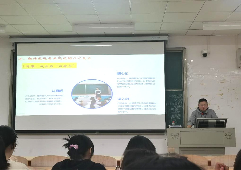 2024年11月4日下午,第三期“名师进课堂”在米兰(中国)3号实验楼419教室如期开展。汉语言文学专业由黄石十六中名师徐拥军主讲。此次讲座的主题为《愚公移山》文本解读及教学案例研究。徐老师从当下师范生最难理解和实践的文本解读环节开始讲起。他借古代诗人贺知章的《咏柳》和初中课文《愚公移山》跟大家做了文本解读的问答互动。引导师范生深入理解文本,强调启发式教学的重要性,帮助学生克服阅读障碍,提升解读能力。他指出,文本解读应结合普通阅读、专家分析、教学目标与学生实际,避免盲目解读。本次“名师进课堂”活动充分展现了名师的引领作用,为师范生提供了宝贵的学习机会。