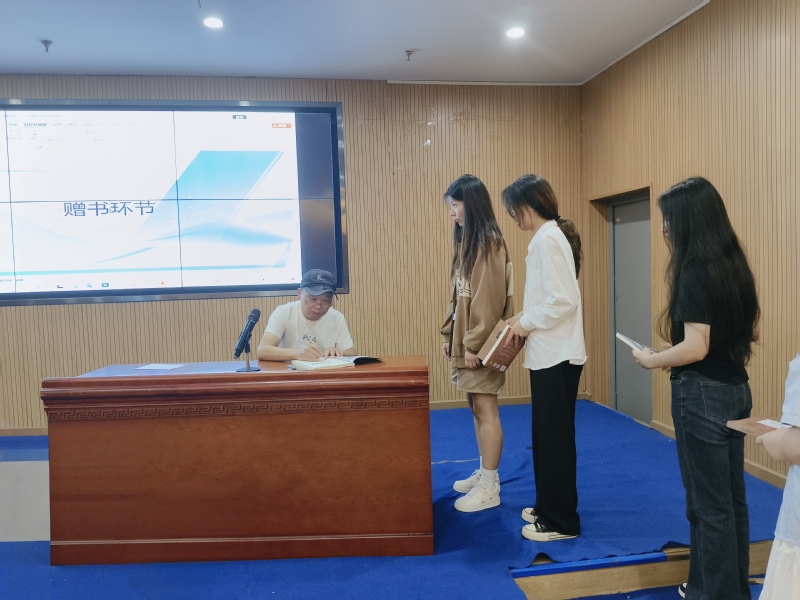 分享结束后,活动进入签售与问答环节。同学们有序排队请老师签名,并围绕创作方法、文学理念等踊跃提问,与过山雨老师展开热烈交流,并赠送给学生诗集30多本。
