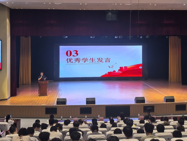 在学生代表发言环节,老生代表郑雅佩以“过来人”的身份分享经验,“刚入学时我也会迷茫,但跟着老师做项目、和同学组队参加竞赛后,慢慢找到了方向。”他从“突破自我、敢想敢做”的学习方法,到“勇敢开始、坚持到底”的行动准则,再到“在热闹中成长,在独行中沉淀”的实用建议。毫无保留地倾囊相授,温暖的话语让新生们倍感安心。新生代表王瑜诚则带着青涩与朝气上台,用铿锵的誓言道出全体新生的心声:“我们将在智能交通领域找准自己的位置,不负青春、不负学院期望。”真挚的发言赢得全场师生热烈掌声。