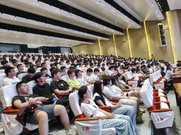 紧接着,院长助理黄庆武聚焦“专业认知”,为新生带来一场干货满满的专业解读。“学院下设的九个专业,均是紧扣智能交通产业痛点、对接行业高薪岗位的‘黄金赛道’。”黄老师以“产业需求”为切入点,逐一拆解各专业的核心课程体系、实践教学模块与学业进阶路径。此外,黄老师重点介绍了学院与头部企业共建的实训基地、常态化开展的科研创新项目与技能竞赛,鼓励新生“多动手、多尝试”,将课堂知识转化为职场竞争力,台下新生专注聆听,眼中满是期待。