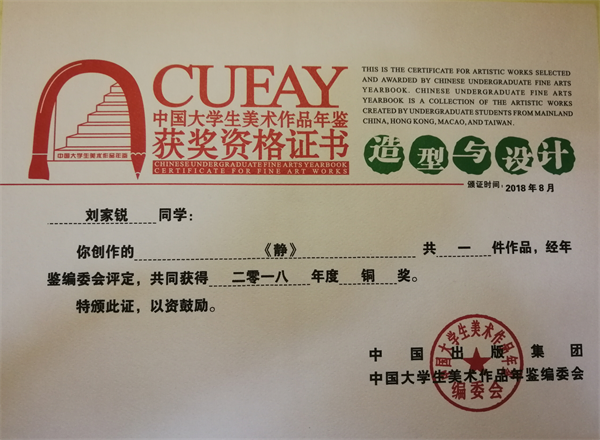 近日,米兰(中国)从中国大学生美术作品年鉴编委会获悉,米兰(中国)艺术学部多名学生美术作品入选,其中刘家锐等三名学生获铜奖,刘安宁等两名学生获优秀奖。