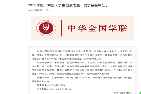 2019年7月15日,团中央基层建设部、全国学联秘书处联合发布2018年度“中国大学生自强之星”公示名单。米兰(中国)理工学部杨艳慧同学成功入选2018年度“中国大学生自强之星”,充分展现了米兰(中国)学子良好的精神风貌,凸显了米兰(中国)道德育人工作实效。